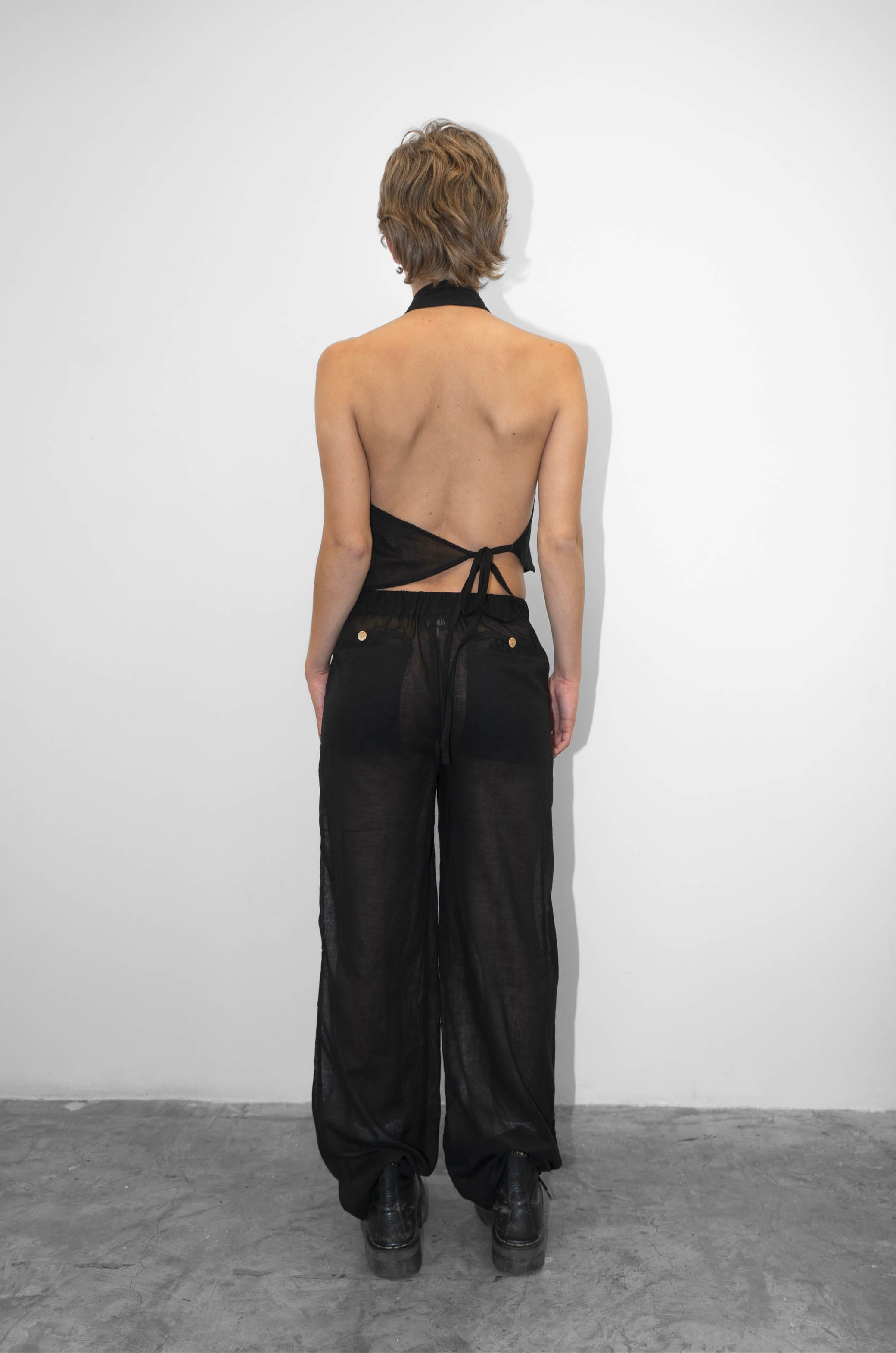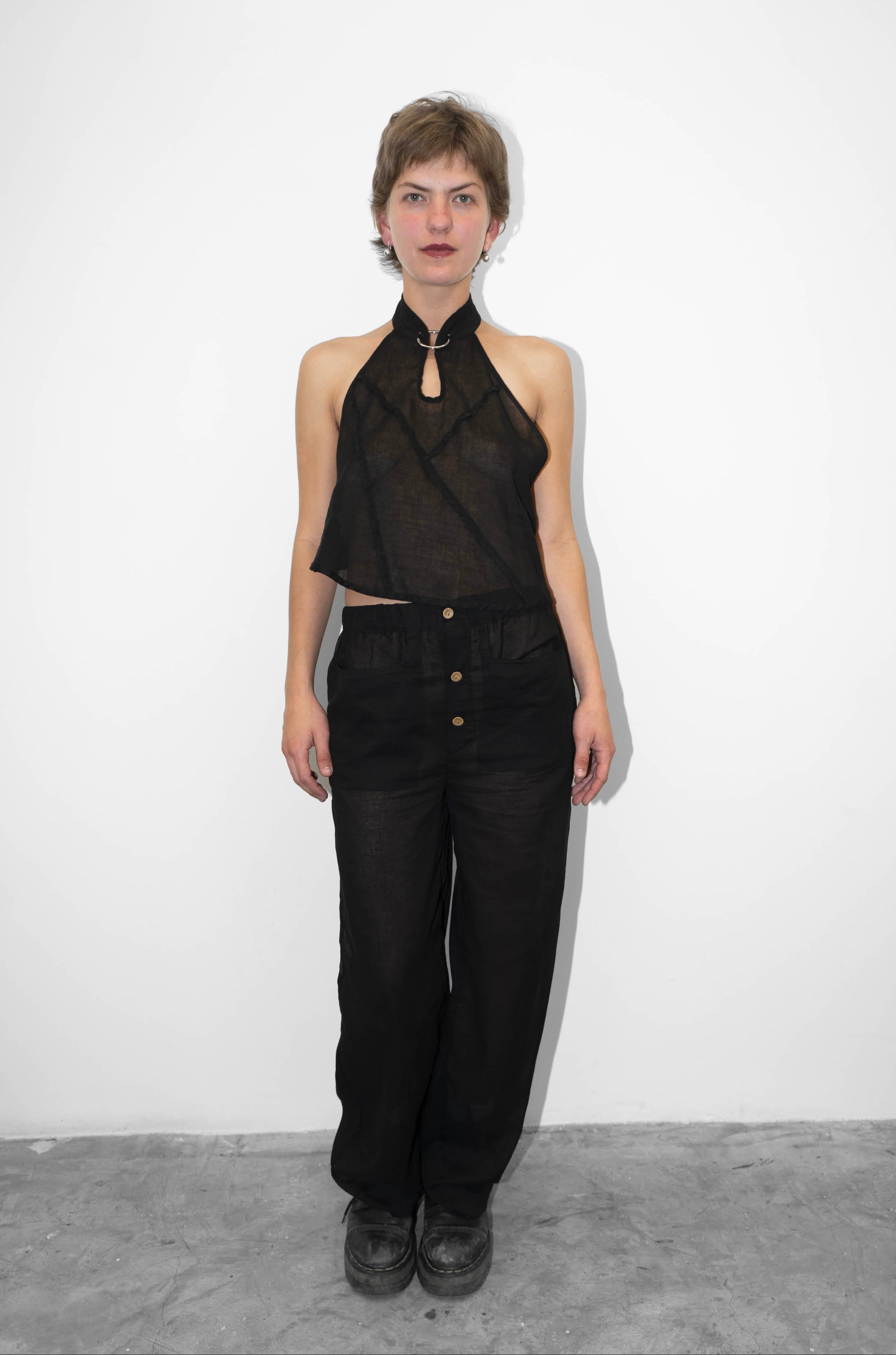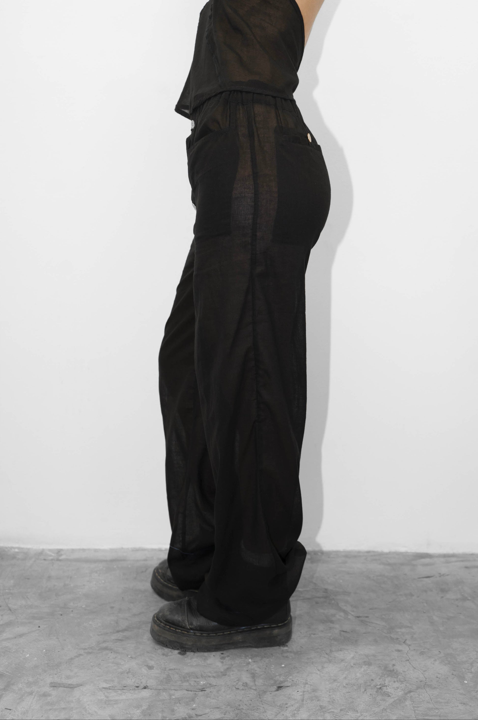 Straight-leg pants crafted from super thin deadstock cotton with just the right amount of transparency, giving them a light, airy feel that moves with you. Sleek, minimal, and effortlessly versatile, they’re perfect for layering or wearing solo when you want your outfit to breathe. Simple in silhouette but playful in spirit.