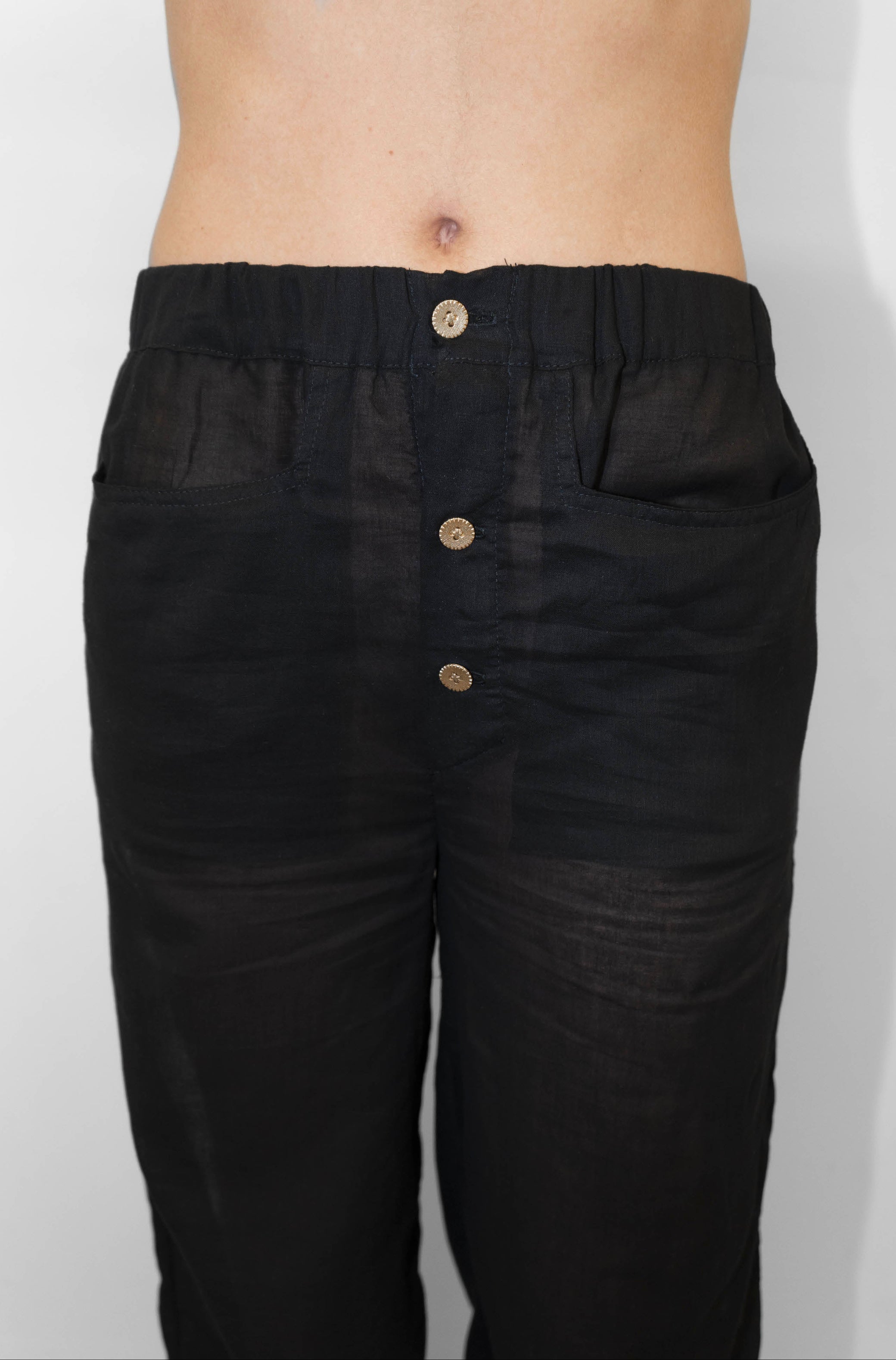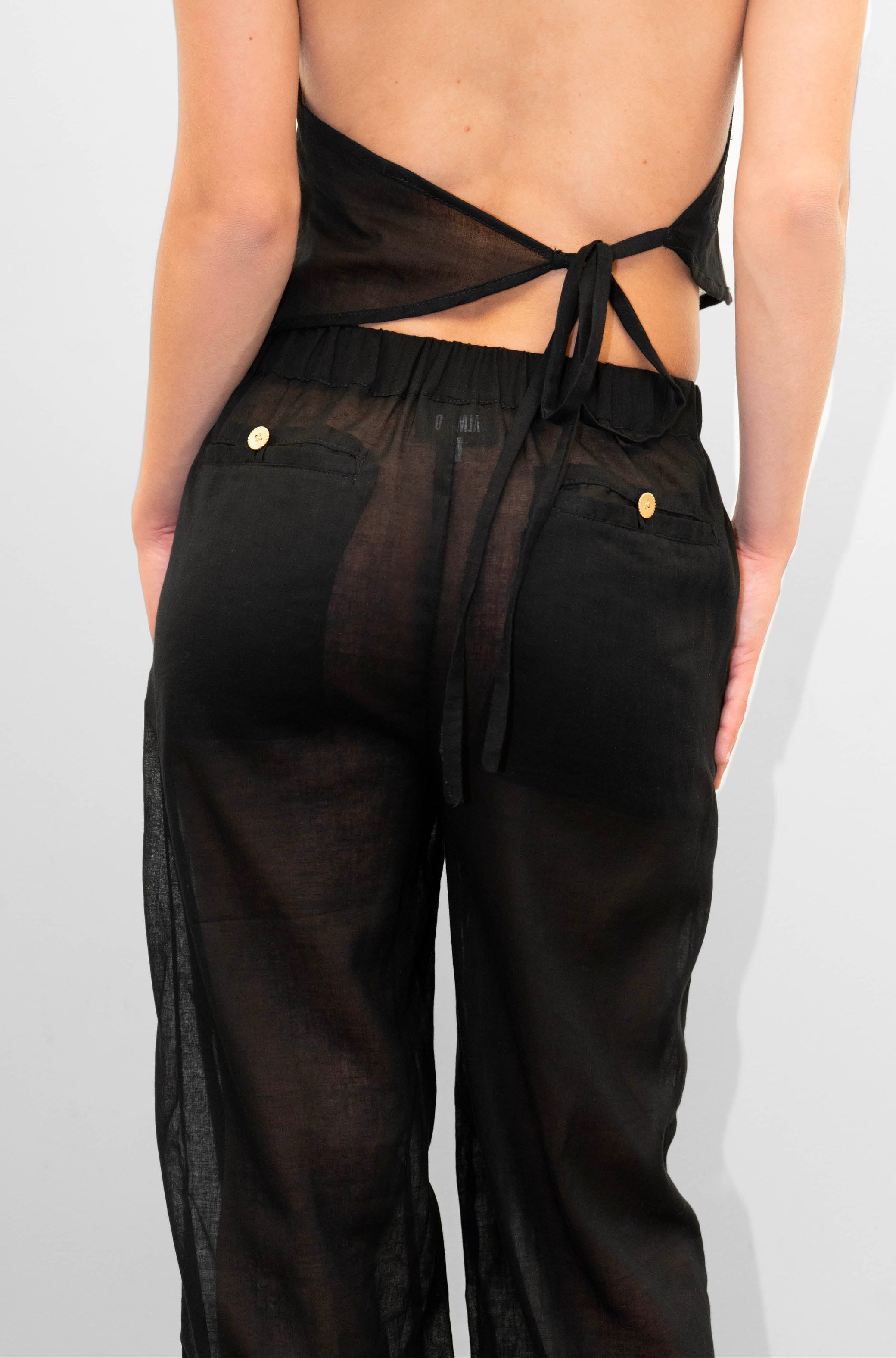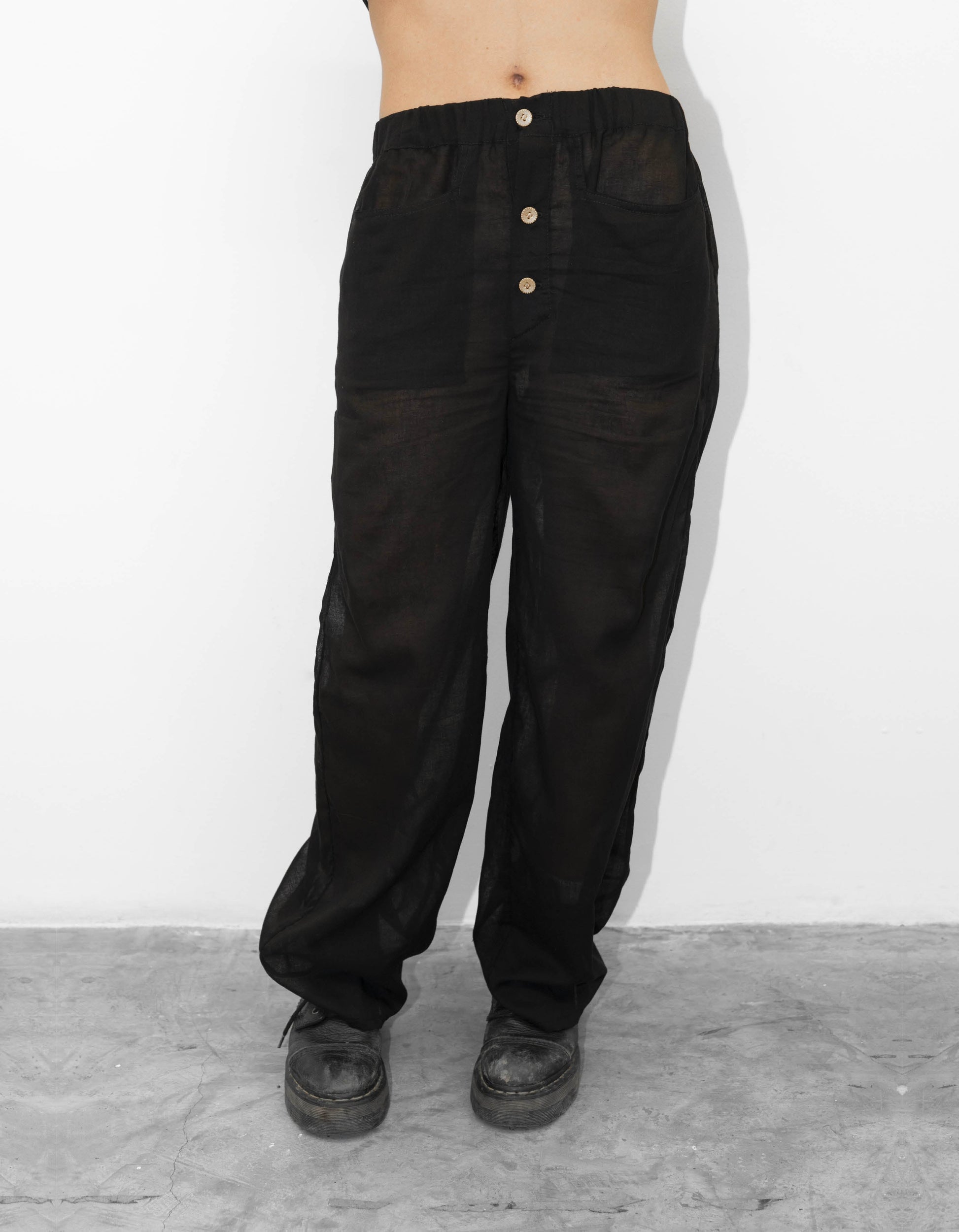Straight-leg pants crafted from super thin deadstock cotton with just the right amount of transparency, giving them a light, airy feel that moves with you. Sleek, minimal, and effortlessly versatile, they’re perfect for layering or wearing solo when you want your outfit to breathe. Simple in silhouette but playful in spirit.