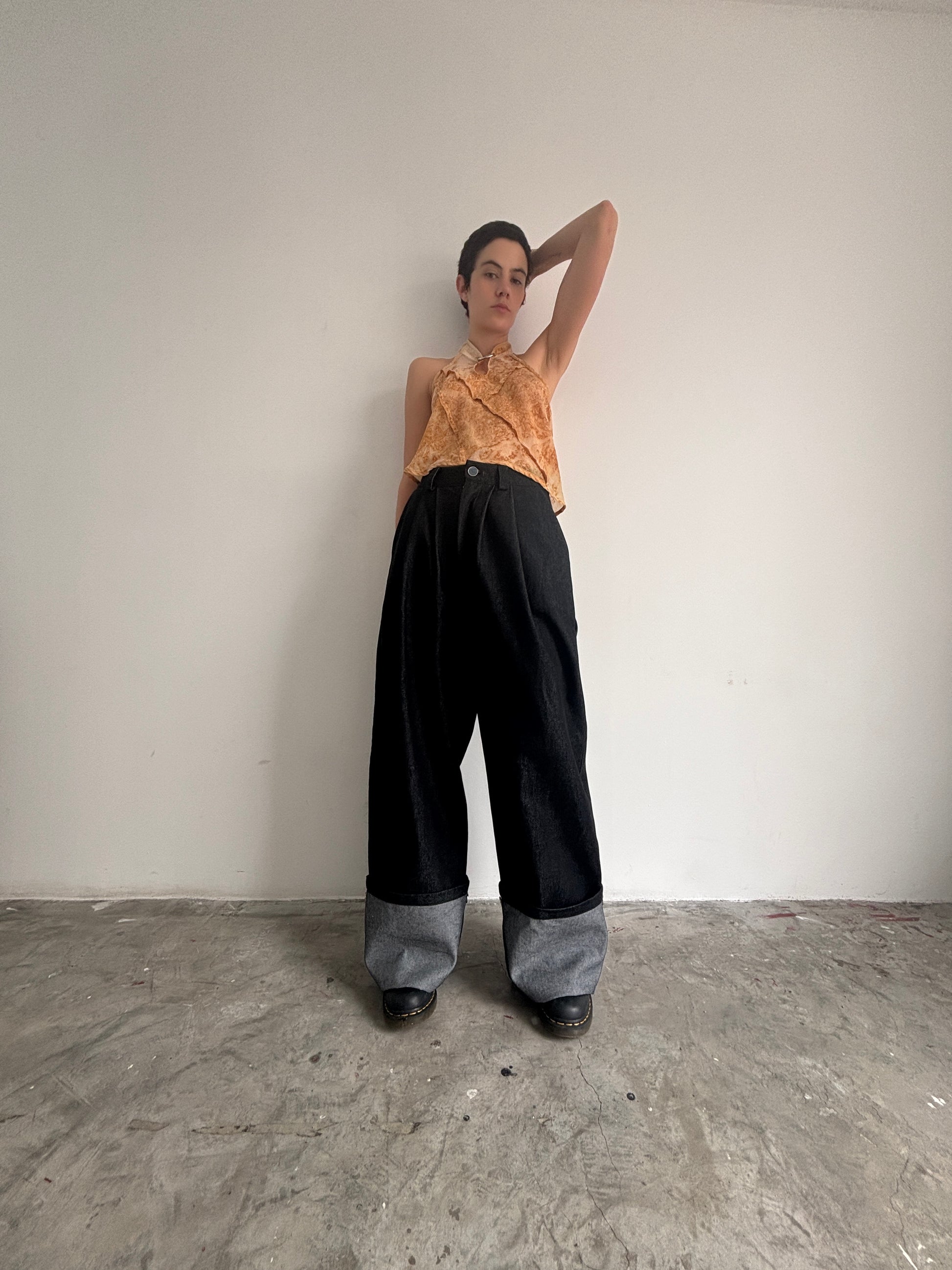 Pure bombacho, reinvented. Extra fabric, barrel-like fit, and soft pleats make these pants a playful take on a classic silhouette. The large hem is tied with buttons, letting you tweak the shape while keeping the relaxed, oversized energy intact. Made in small-batch production, each pair is limited and carefully crafted—once it’s gone, it’s gone.