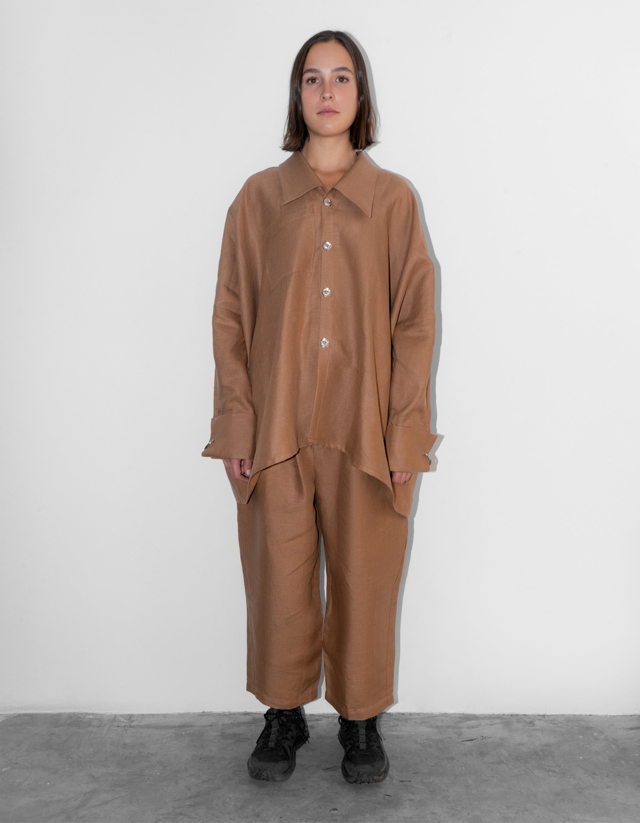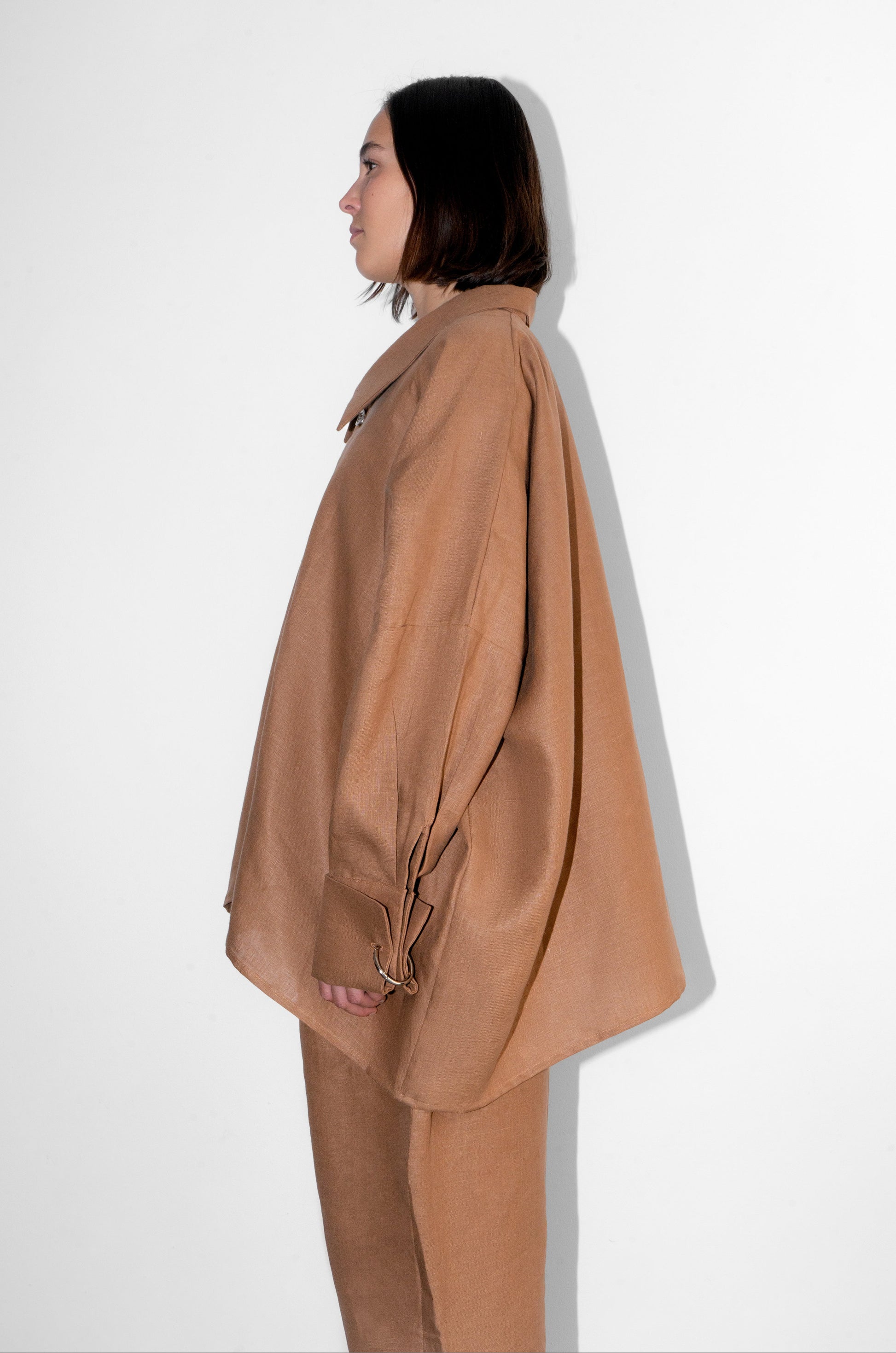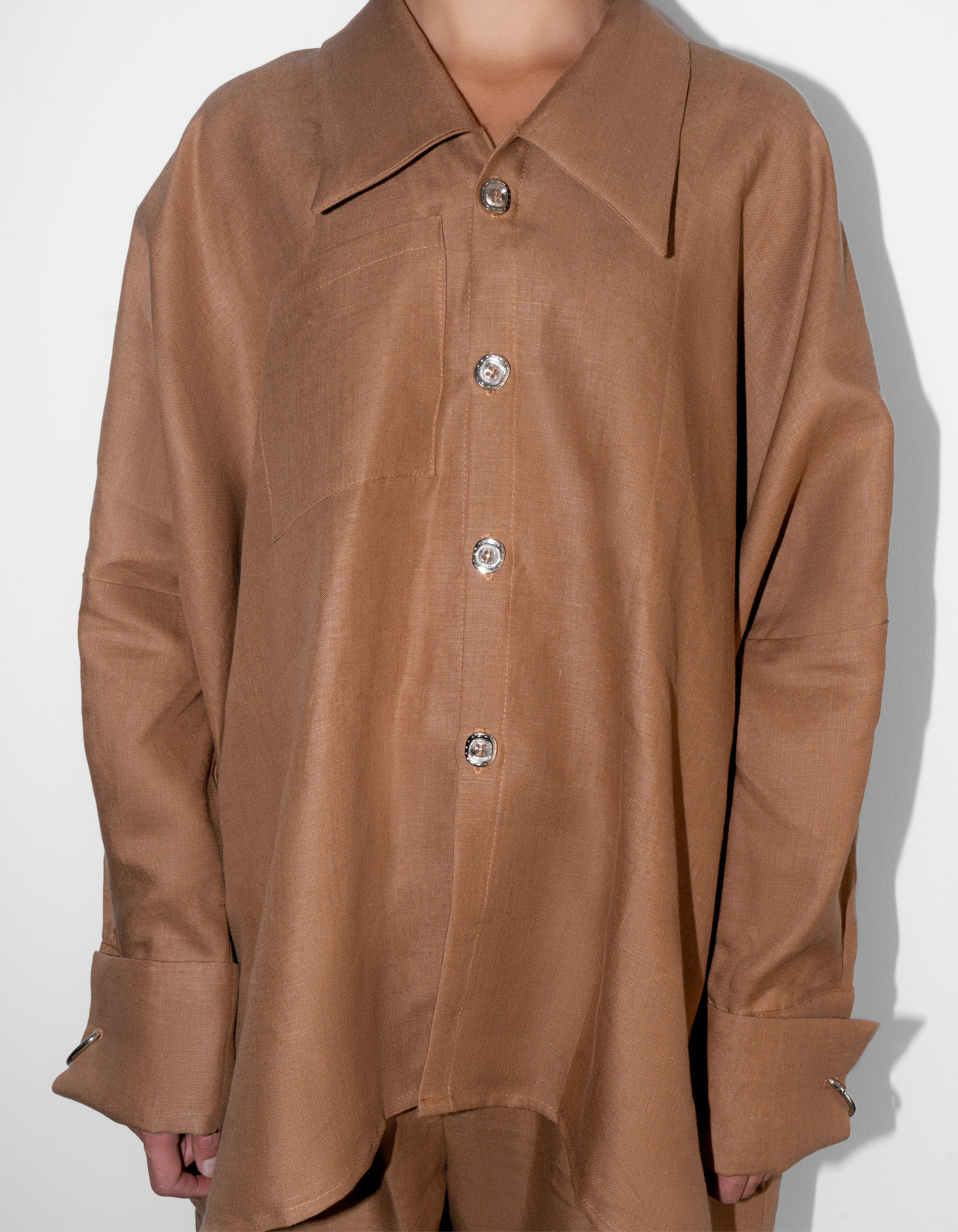 Light, airy, and effortlessly oversized, the linen Joker Shirt is for days when you want to feel cool, breezy, and a little untouchable. The big collar and playful metal-ring cufflinks turn a classic shirt into a wardrobe hero, while the front pocket adds just enough function to make it real. Made from deadstock linen, each piece is limited—once it’s gone, it’s gone.