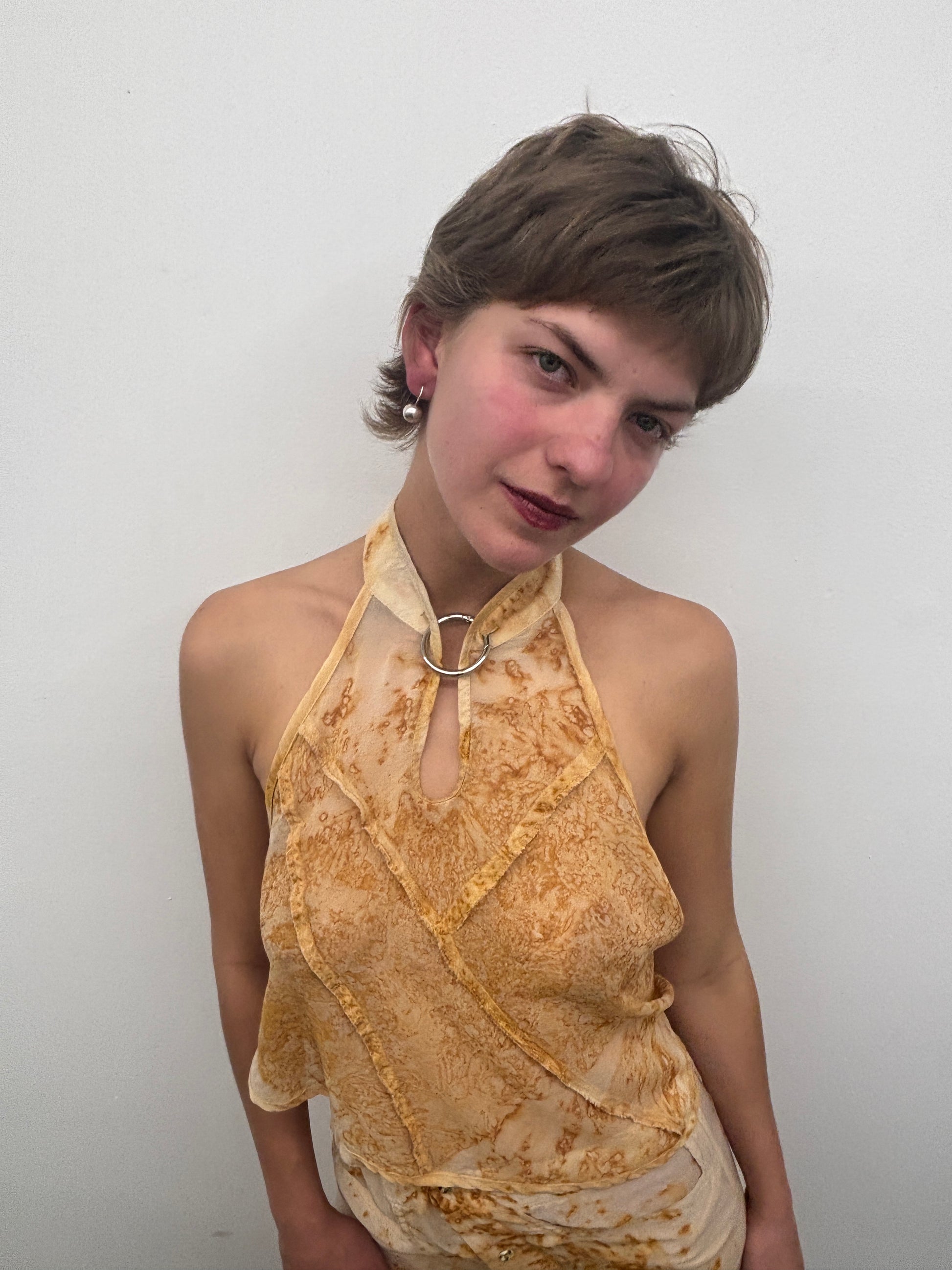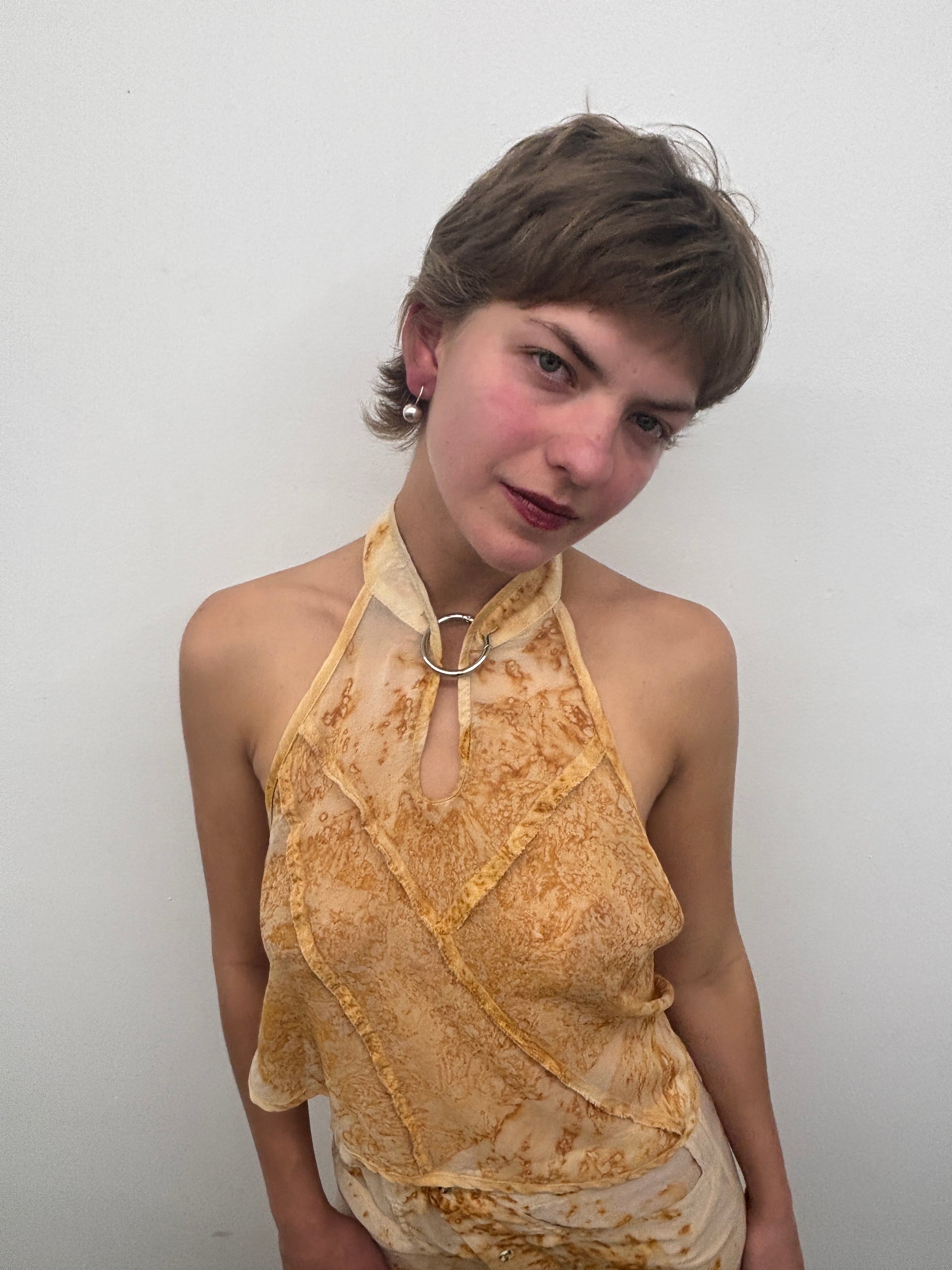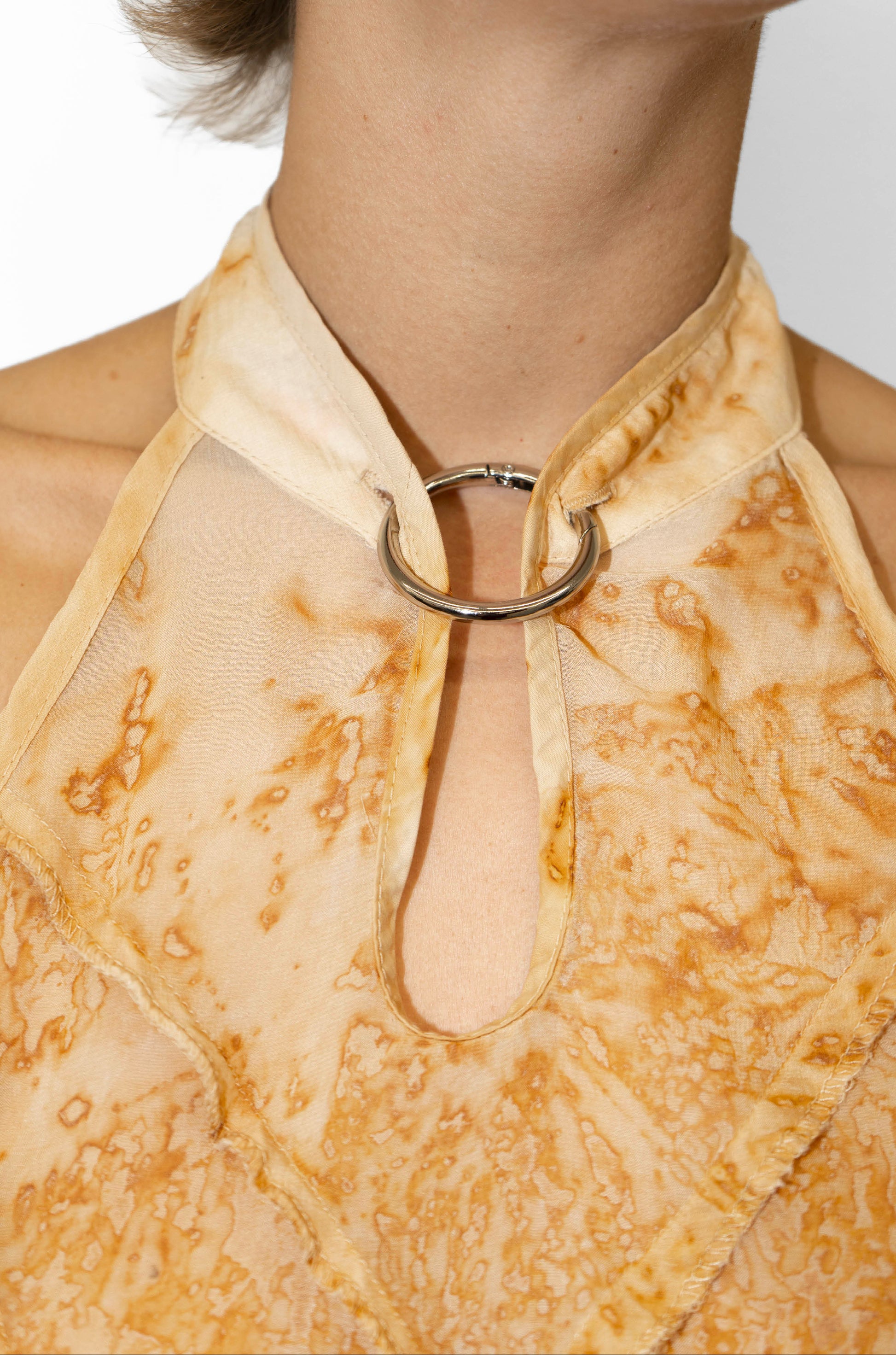Asymmetrical, airy, and completely versatile, the Triangulo Top features strings to tie it at the back—or twist it all the way around for a new look. The neckline comes with a detachable metal ring, and the entire back is open, giving it a playful, unexpected edge. Made from deadstock rust-dyed cotton, each piece is unique and limited.